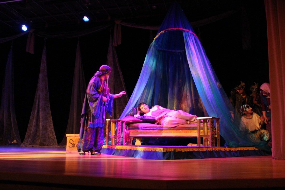The mighty Schahriar, Sultan of Persia, is a troubled man. A foul, black mood has taken hold of him, and he cares nothing for anyone, or anything. The kingdom is being neglected, and powerful Sheikhs eye his throne. Attempts to cheer him up have failed miserably, and the Sultan is drifting farther away from his people. In one last desperate attempt to bring joy back into the Sultan’s life, the clever girl Scheherazade creates a dream world of fabulous tales with the help of palace servants and slaves, and Sinbad the Sailor never had so much fun!