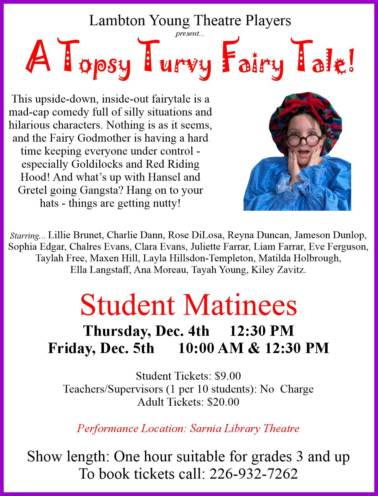 Show Dates Dec. 3, 4, 5, & 6 Sarnia Library Theatre.